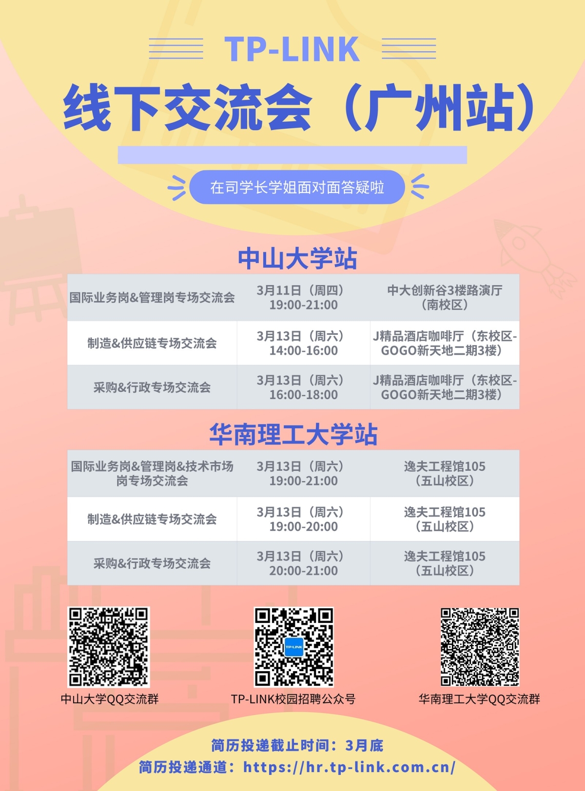 导航痕迹 首页 学生工作 职业发展 普联技术有限公司校园招聘 普联技术有限公司校园招聘 发布人:旷志渊 发布日期:2021-03-11 普联技术有限公司于周四晚和周六下午一共有三场交流会 415 Share