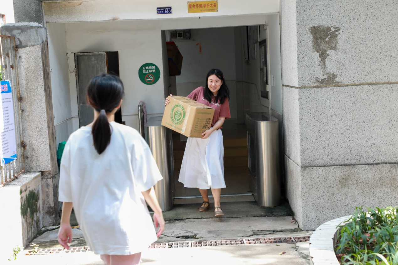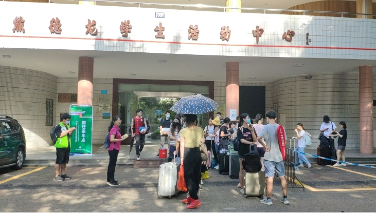 7月21日、22日上午7点在东校园,学院老师和志愿者们就已经在各调度点就位。当同学们和他们行李达到后,老师们马上带领志愿者投入紧张的工作中,他们在宿舍楼下维持秩序,组织同学们有序卸载行李物品,并及时协调解决临时出现的各种状况和问题。从办理入住,搬运行李,打扫卫生,整理行李……同学们在收拾东西的同时也趁着阳光晒晒被子,也感受着东校园的亲切和温暖,一起愉快地融入新环境。