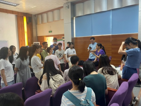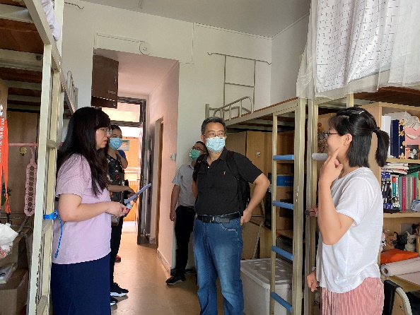 7月22日下午4点,学院薛德升院长、岳辉书记、刘丙军副院长、张春华副书记、学院党政办林鸿章主任、全体辅导员们一起到学生宿舍看望学生,并与学生亲切交流,详细了解他们的搬迁情况和对新校园的感受;仔细询问同学们的暑假去向,告知同学们要严格遵循防疫要求;针对当前河南灾情,领导们向来自河南的同学表达深切关心,认真了解他们家乡的受灾情况,并提醒他们一旦受到灾情影响要及时报告学院;最后鼓励同学们在东校园开启崭新的征程。