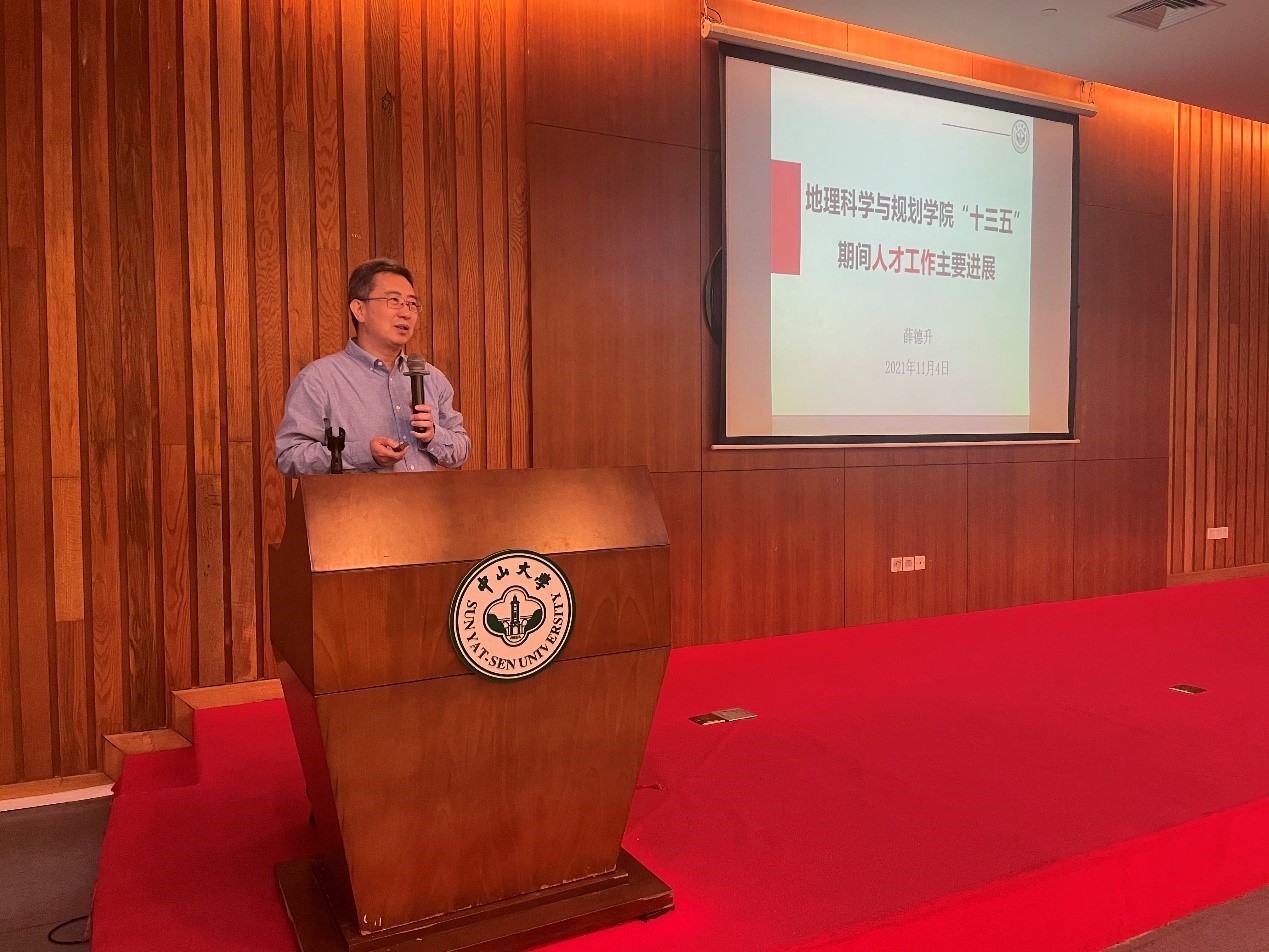 2021年11月4日下午,地理科学与规划学院在广州校区东校园行政楼B101讲学厅召开全院教职工大会,传达学习学校2021年秋季工作会议精神。学院院长薛德升教授、党委岳辉书记、副院长邓孺孺教授及全院教职工100余人参加了会议,会议由学院党委张春华副书记主持。