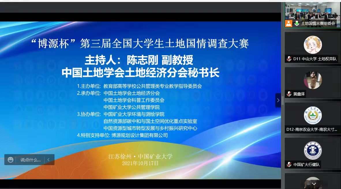 近日,“博源杯”第三届全国大学生土地国情调查大赛决赛在中国矿业大学公共管理学院举行。比赛由教育部高等学校公共管理类专业教学指导委员会主办,中国土地学会土地经济分会、中国土地学会科普工作委员会、中国矿业大学公共管理学院承办,中国矿业大学环境与测绘学院、自然资源部碳中和与国土空间优化重点实验室、中国资源型城市转型发展与乡村振兴研究中心协办,博源规划设计集团有限公司特别支持。本届大赛共征集了来自74所高校提交的156份参赛作品,经过专家评选后最终确定48份作品入围决赛,20份作品授予优秀作品奖。其中由我院庄诺亚同学组成的土地权弈队,在杨忍老师指导下,凭借作品《资本下乡中宅基地发展权的主体博弈与实现机制——以广州市凤和村“空港文旅小镇”项目为例》荣获二等奖!