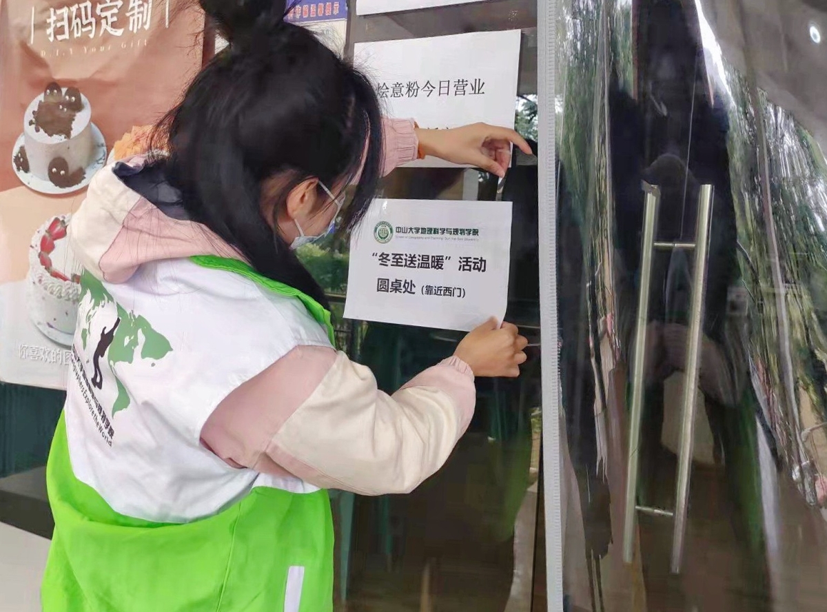活动开始前,志愿者们提前到达第五食堂积极准备相关工作,完成活动温馨提醒张贴工作,协助做好汤圆分装工作。