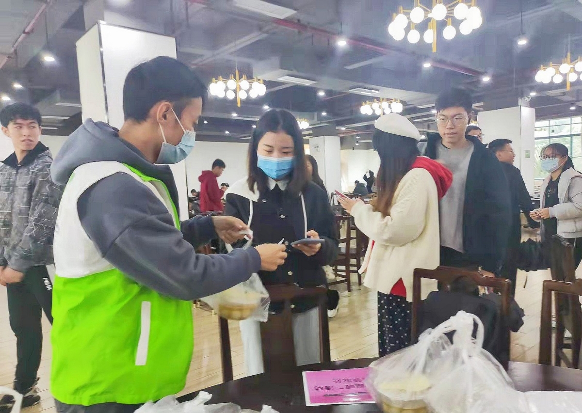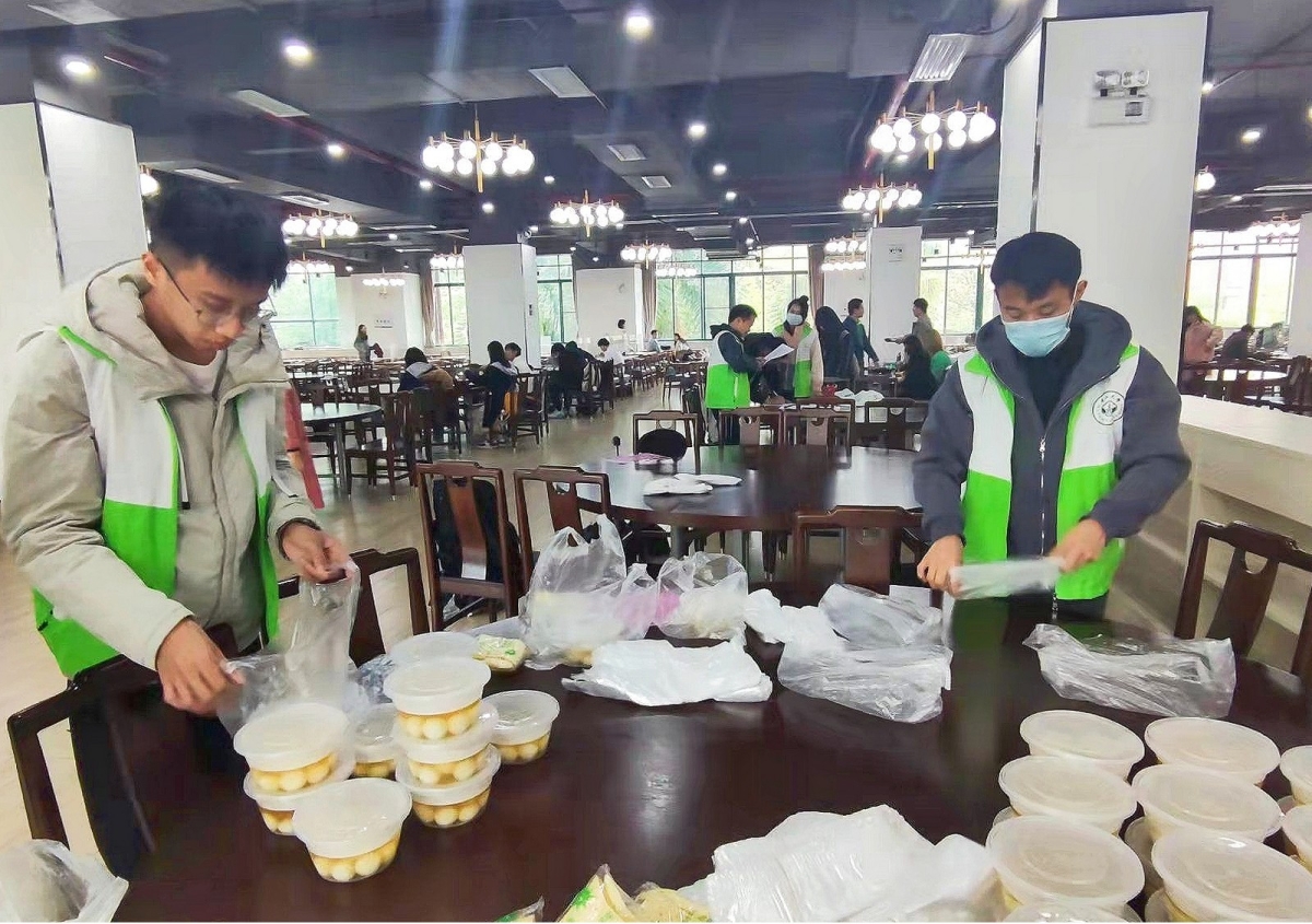 志愿者们还将热腾腾的暖心汤圆送往院楼,分发给忙于工作而未能到现场领取汤圆的老师和同学,让这份温暖贴心传递到每一位师生。