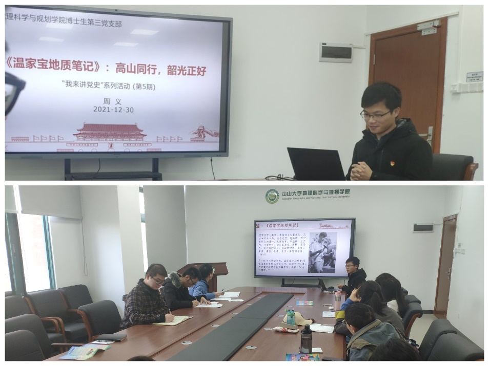 最后,支部开展了“我来讲党史”系列活动第5期。本期内容由陈玲舫、周义和谢春霞3位党员同志分享自己的党史学习体会。陈玲舫同志讲述了“解放战争中的三场重要战役”的历史背景、经过及其重要的历史意义;周义同志分享了自己读《温家宝地质笔记》一书的心得体会和感悟;谢春霞同志则就“党章写下的第一个名字为何是马克思”这一问题,分享了自己的见解和看法。通过本期的分享交流,与会党员和积极分子对党史相关内容有了更深刻的认识和了解,进一步提升了自己的理论水平。
