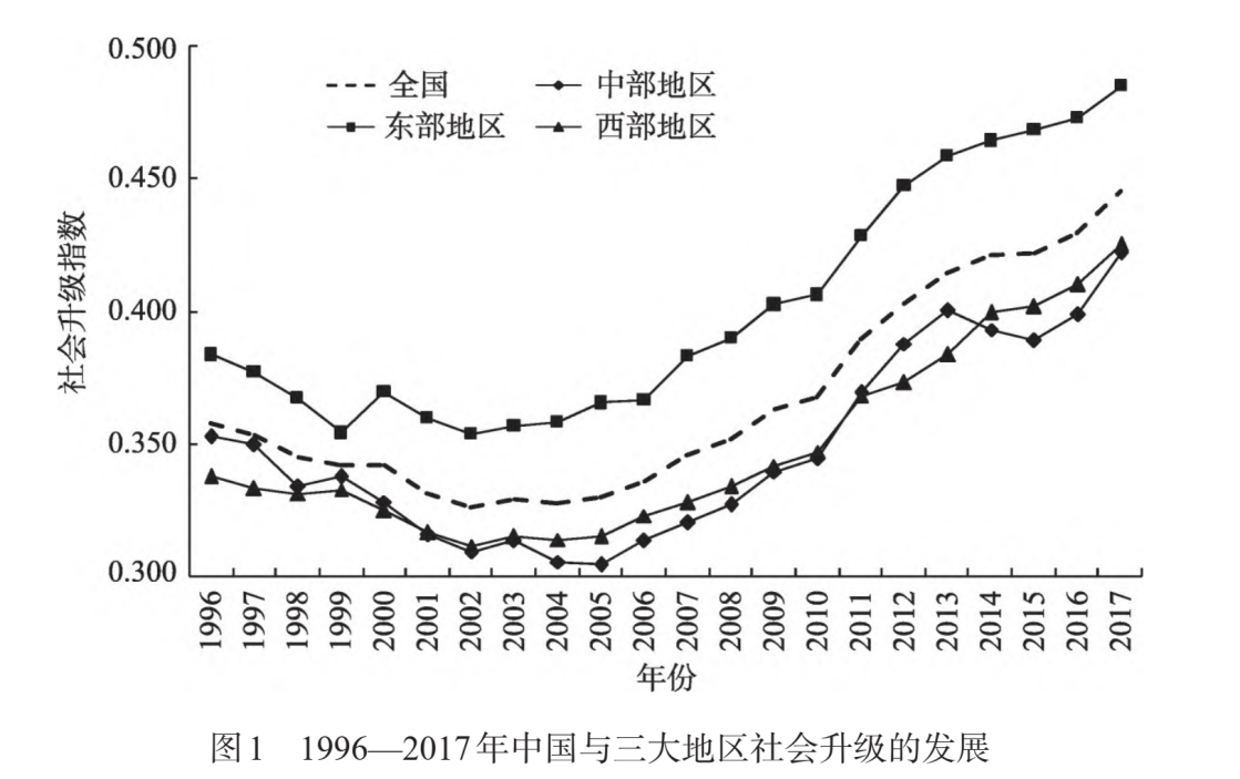 研究进一步揭示了经济增长、产业创新、经济全球化、劳动力技能和政府治理等因素对区域社会升级变化的影响,反映了社会升级受全球和本地因素影响的过程。研究证明,经济增长快速并非一定带来社会升级,促进社会升级需要提升经济发展的质量。中国社会主义建设的十四个基本方略之一是“在发展中保障和改善民生”,这意味着社会升级应置于经济升级的过程。该研究形成的政策建议认为,促进全国社会升级,缩小地区间的社会升级差异,不仅需要维持经济增长活力,而且应重点推进高质量发展战略,包括推动产业结构高端化发展、加快发展生产性服务业,加大研发投入、提高企业竞争力,扩展对外合作、提升全球经济参与度,发展职业教育、提高劳动力技能水平和劳动生产率,完善和实施劳动就业保障制度。