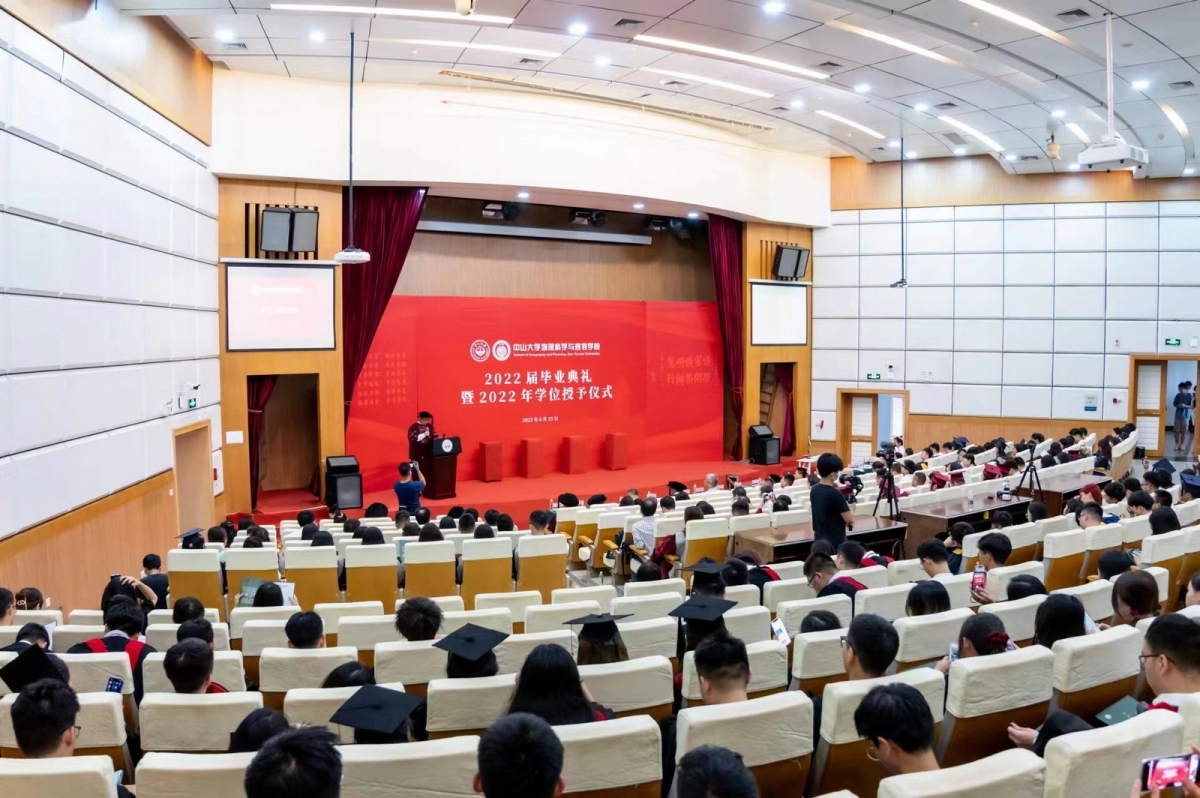 谷围谷河,蛟龙入海;明德北望,鲲鹏展翅。今天喜迎二零二二届同学毕业盛典!我谨代表地理科学与规划学院,向今年毕业的155位本科生、102位硕士研究生和16位博士研究生致以最热烈的祝贺!向为同学们的成长成才付出心血和汗水的各位老师致以最崇高的敬意!