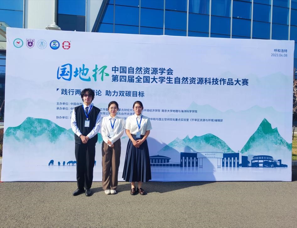 2023年4月8日,在内蒙古呼和浩特自然博物馆举行的“国地杯”第四届全国大学生自然资源科技作品大赛决赛中,由我院2020级自然地理与资源环境班本科生崔伦杰、龙晓泽、罗旭、罗友好组成,杜建会、刘南丰老师指导的“南天一柱队“携参赛作品《基于多源遥感影像的雷州半岛森林对台风干扰的响应研究》获得特等奖。