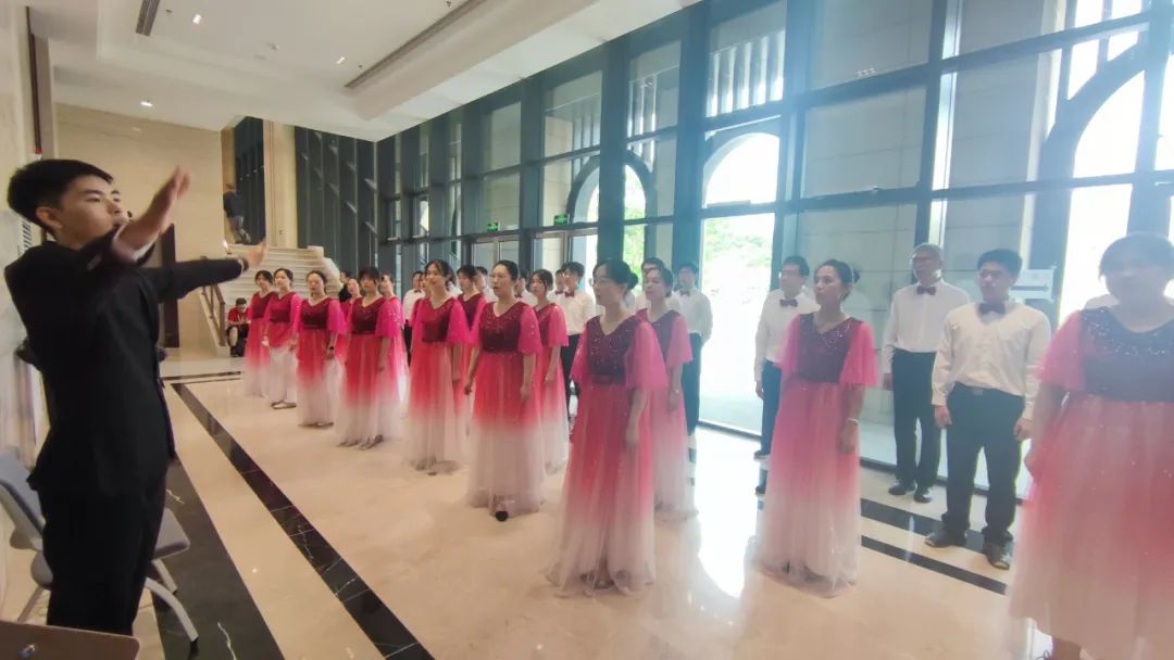 在婉转悠扬的钢琴声中,合唱团的成员们保持微笑,放开歌喉,尽情唱响爱国旋律。表演还穿插了悦耳动听的鼓声和轻盈曼妙的舞蹈,为整体的舞台效果添上画龙点睛之笔。