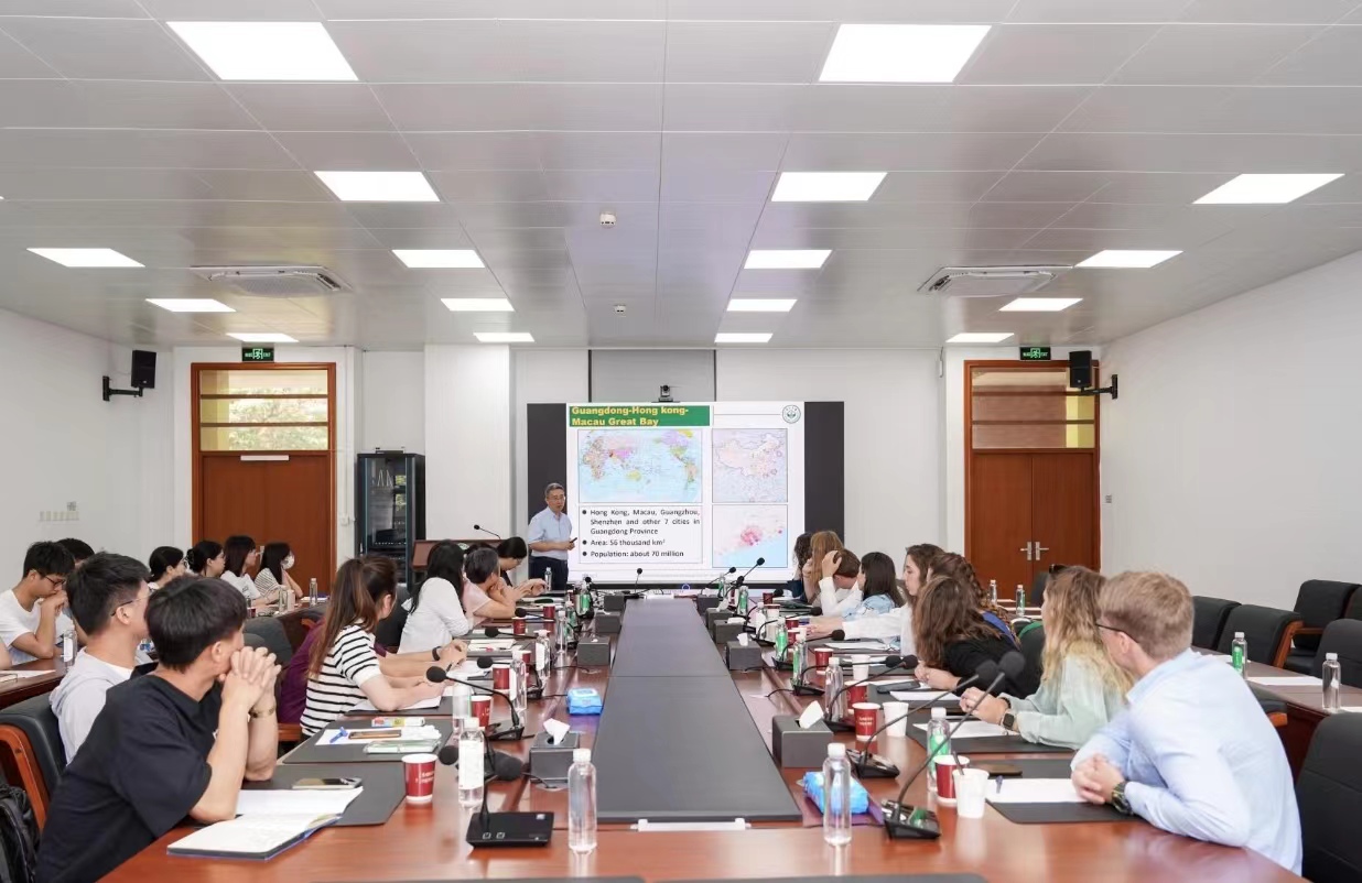 在活动的第一个环节,薛院长对俄罗斯地理学会代表团访问我院表示热烈欢迎,并介绍了学校情况,学院的发展历史、人才培养、学科建设、科学研究、未来展望等(图2)。随后薛德升院长为俄罗斯师生做了“珠江三角洲的区域发展与规划”的学术报告(图3),并回答了代表团师生提出的问题。
