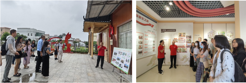 赤坭镇瑞岭村以组织振兴引领乡村振兴,以产业兴旺为核心,以龙头企业为带动,以生态优美为抓手,以农民致富为根本,在巩固党建引领瑞岭蝶变成果基础上,探索实践具有花都赤坭特色的乡村振兴新路子,以党建共建带动乡村发展。瑞岭村党委书记姚标民和副书记刘桂秋带领师生们参观瑞岭村新时代红色征程馆,讲述了瑞岭村党委如何从基层组织建设抓起,使基层治理由“乱”到“治”,富民产业由“弱”到“强”,党心民心由“散”到“聚”的振奋人心红色故事。在参观的过程中,师生们更加深刻地体会到抓好党建是促进乡村振兴的必由之路,只有夯实党组织建设,才能强本固基,确保党的方针政策在农村落地生根。
