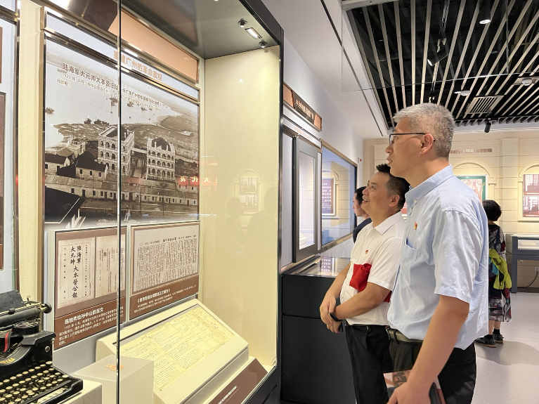 支部党员首先参观了中共中央机关旧址——春园。1923年4月,中共中央从上海迁至广州。4月至9月,中央机关以春园为主要办公场所。中共三大期间,陈独秀、蔡和森、李大钊、毛泽东、张太雷等部分代表和共产国际代表马林在此居住办公,研究国共合作的方针政策、中共三大的宣言和各项决议草案等,推动了中国革命的进程。春园陈列的各类历史文献资料,让大家仿佛回到当年中共三大代表紧张忙碌的工作现场。
