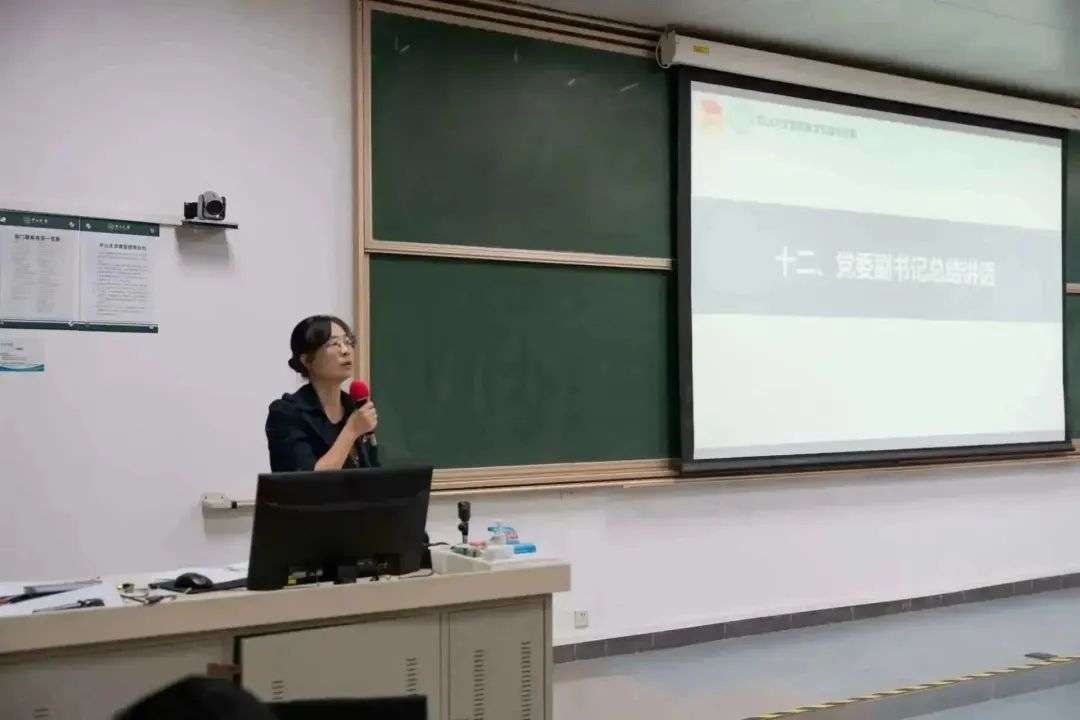 随后,学院党委副书记张春华老师进行总结讲话,她表达了学院党委对本次会议的重视,并对学院上一届各学生组织的积极努力表示感谢。同时,张春华副书记对新一届主席团成员提出了三点期望:一是在工作的指导思想和宗旨上,应加强学习、提高站位,深刻体会理论推动实践的强大力量,认识到学生组织在立德树人工作中的重要作用;二是在工作的方法和作风上,学生骨干应清楚学生组织的定位,要接地气、了解同学的需求,基于同学的成长成才需要来为同学们提供服务,并提高为同学服务的能力;三是在工作目标上,要出精品、出品牌,在学院良好的学生活动基础上进一步加强整合凝练,提升活动质量,以增强学院的凝聚力、认同感、荣誉感。