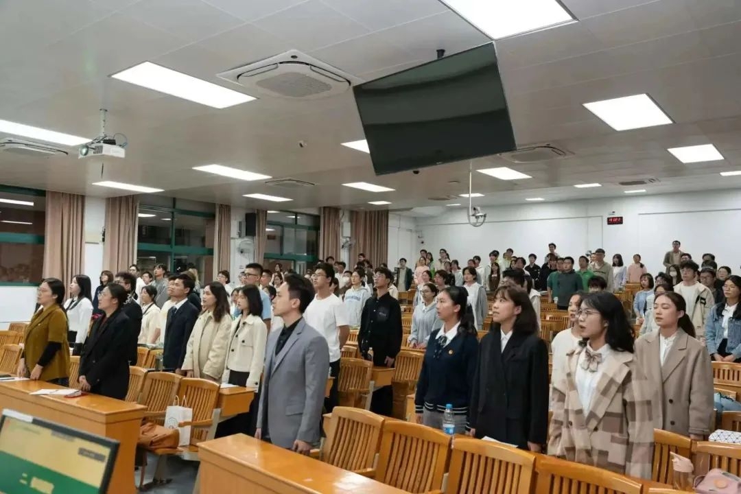 会议伊始,全体师生起立,共唱国歌,在雄壮激昂的国歌声中,本次大会正式开始。
