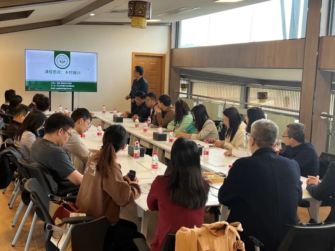 随后,支部书记杨忍老师上党课《课程思政:乡村振兴》,强调课程思政建设是落实立德树人根本任务的战略举措,是全面提高人才培养质量的重要任务,并以《村庄规划》课程为例,从课程教学内容、课程价值观培养、课程实践内化三方面分享乡村发展与规划课程的课程思政创新。庄文杰校友分享了《东润农旅乡村振兴的实践思考》,他认为乡村振兴核心在产业,除了实体的农产品以外,虚拟的服务同样有价值,并提出城乡融合、农文旅融合是当下全面推进乡村振兴的可行方向和模式。易岚总经理分享了《广东邮政金融创新项目协同构建乡村休闲服务生态》,详细介绍了广东邮政2023打造“和美乡村”新元年,推进智慧“民宿+”乡村休闲旅游场景生态圈的做法和经验。城规系主任黄耿志老师在总结中,充分肯定了此次活动的意义,认为乡村振兴的多元化场景为高校立德树人提供了丰富的资源,专业教师在课程思政建设过程中应该注重理论学习和实践体验的有机结合,服务于学生的成长成才。