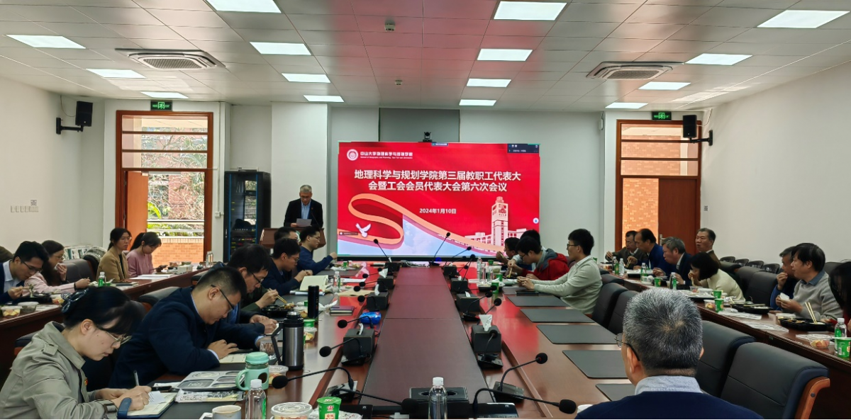 2024年1月10日,地理科学与规划学院第三届教职工代表大会暨工会会员代表大会第六次会议在学院大楼B210会议室召开。会议采用线上和线下相结合方式进行,审议2023年度学院工作报告、财务工作报告、工会工作及财务报告。学院党政领导班子成员、各系主任、教授,及党政办公室、学工部、实验教学中心全体教职工等46人参加现场会议,另有教职工75人参加了线上会议。会议由学院党委岳辉书记主持。