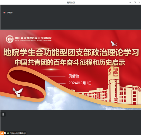 2月1日,政治理论学习以“走进共青团的 102 年——中国共青团的百年奋斗征程和历史启示”为主题。首先全体成员观看共青团中央五四微电影《重逢》,电影以戍边烈士肖思远为原型,展现了青年一代勇于担当的精神,同时也展现了中国日新月异的发展。随后,学生会主席团成员贝倩怡带领全体成员解读中国共青团的百年奋斗征程和历史启示。2024年是中国共青团成立的第102周年,共青团坚定不移跟党走,在不同历史时期围绕党的中心任务作出了重要贡献。在新时代,共青团在政治建设、改革创新、青年引领等方面取得了显著成绩。共青团将继续为实现中华民族伟大复兴而奋斗,坚持党的领导,加强科学理论武装,围绕中心、服务大局。学生会成员们认真学习,深入交流研讨,进一步增强了自身的责任意识和使命意识,表示定将不忘初心,砥砺前行,用自己的青春力量继续书写新时代的精彩篇章。