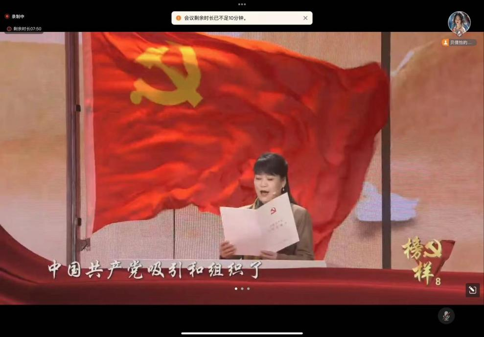 2月2日,政治理论学习以“深入学习先进典型党员榜样”为主题。首先,全体成员学习习近平主席二〇二四年新年贺词,其中回顾了国家2023年的收获,也提出了2024年的新年期待。随后,成员们集中观看《榜样8》,一个个鲜活的事迹生动展现中国共产党人坚定信念、践行宗旨、拼搏奉献、廉洁奉公的高尚品质和精神风范,彰显基层党组织战斗堡垒作用和党员先锋模范作用。通过学习,成员们看到了人民为祖国奉献,以及人性的光辉和榜样的力量,这些榜样用自己的行动诠释责任,用奉献彰显担当,成员们纷纷表示要学习榜样精神,以实际行动去投入到祖国建设的事业中,共同参与绘画祖国蓝图。