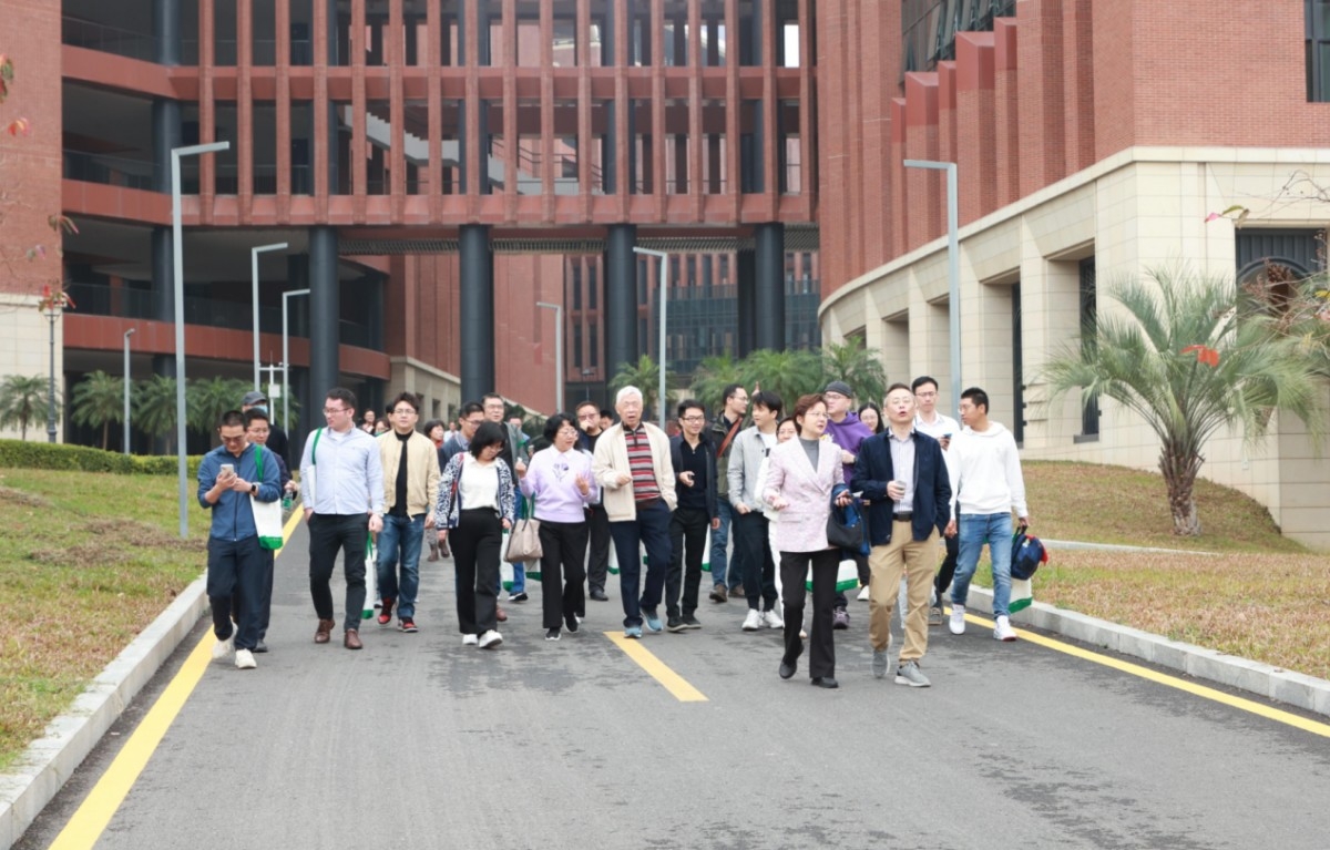 见面会结束后,为进一步增进校友们对深圳校区的了解,学院组织与会校友参观深圳校区。在深圳校区管委会王莉娜副主任、康红姣老师及学生志愿者的带领下,校友们兴致勃勃地参观了校区规划馆、体育馆和图书馆,通过老师和学生志愿者的讲解,进一步了解到深圳校区的规划和建设情况,也对深圳校区的未来发展有了更加美好的期待。在参观过程中,气势宏伟的校园建筑和现代化的场馆设施,无不展现出深圳特区勇于开拓创新的胆识与气魄;映入眼帘中那满目苍翠的校园和古朴典雅的建筑外观,又把广州康乐园的色彩和神韵传承和延续,让参加活动的校友们流连忘返,赞叹不已,也不禁为母校开拓进取的精神和日新月异的面貌感到骄傲和自豪。最后与会校友们汇聚在图书馆前广场,将这美好的瞬间定格成永恒。