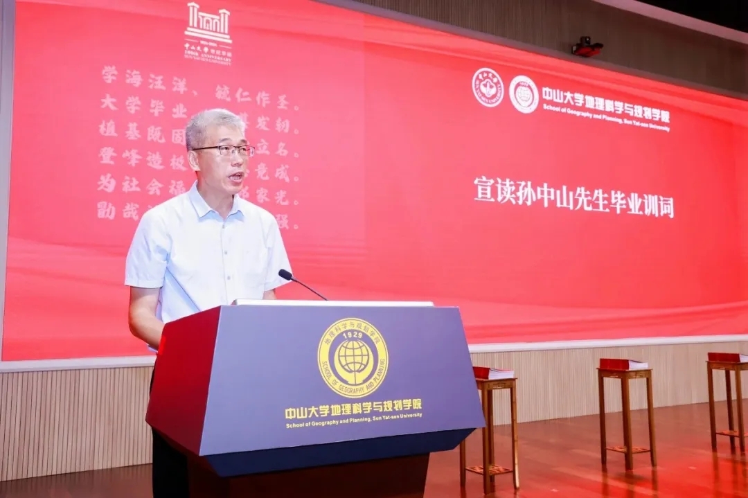 薛德升院长寄语全体毕业生,在过去几年的求学生涯里,大家领略了丝绸之路上山川的雄伟与河流的奔腾,“用脚步丈量世界之广大”;亲身感受了连州和凤庆的乡土蝶变,“用心灵感受世界的美好”;解读了卫星影像中闪烁空间奥秘,“用地理解读世界之妙趣”;洞察进而参与粤港澳大湾区的创新与腾飞,“用规划改变世界之未来”。在同学们即将踏入新的征程之际,薛院长希望同学们“知之愈明,则行之愈笃;行之愈笃,则知之益明”,笃行不怠,用绚烂色彩点缀每一个角落,为强国建设的伟大事业播撒希望的种子,迈向属于自己的未来!