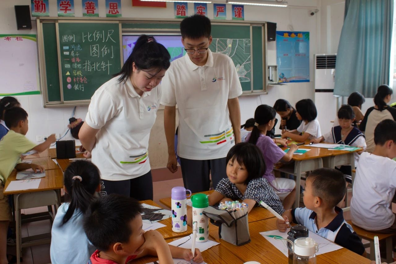习近平总书记指出,做好美育工作,要坚持立德树人,扎根时代生活,遵循美育特点,弘扬中华美育精神,让祖国青年一代身心都健康成长。7月17日上午,实践团成员发挥专业优势,打造面向乡村儿童的特色课程“丰阳童梦绘画课堂”,为丰阳镇中心学校30余位小学生带来了一场别开生面的手绘地图之旅,以自己的实际行动推动乡村儿童美育发展。
