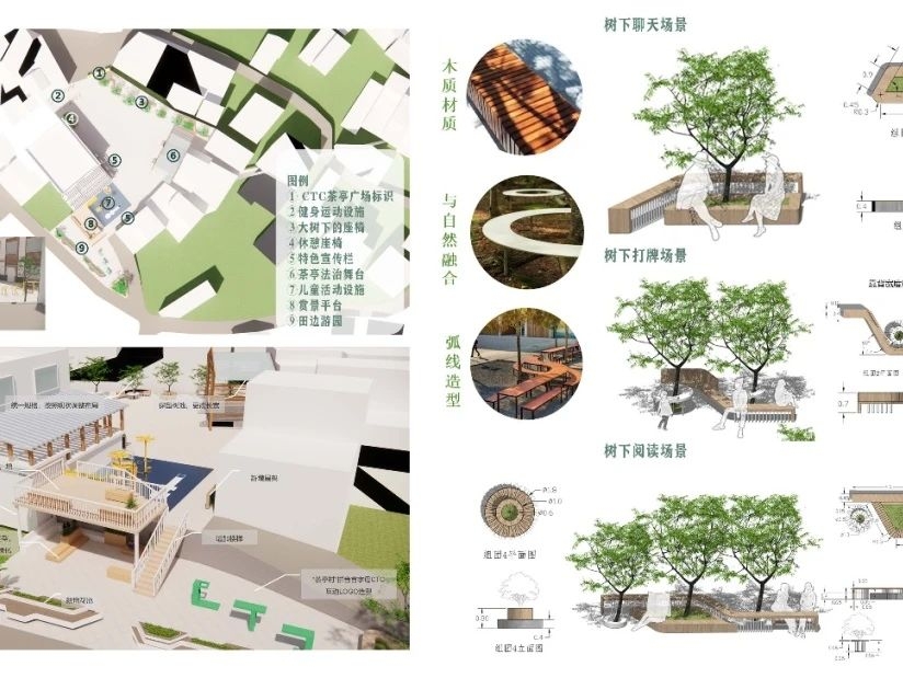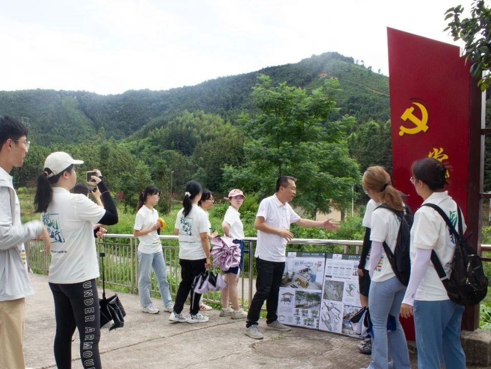 丰阳镇大富头下辖茶亭村始建于明万历年间,自古便是连州通往湖南茶盐古道上的重要驿站,因古道穿村而过,且村中有横凉亭而得名。在前期规划针对该村提出的“把脉、理村、造境、兴道”和美乡村建设八字方针基础上,实践团以人居环境提升为切入点,重点对文化广场和村庄入口两个节点进行现场勘察、概念提取和规划设计,部分设计成果达到施工图深度,并就设计方案和具体做法同村委、施工方进行多次三方现场沟通,为该项目的早日落地实施打下坚实基础,以实际行动助力茶亭人居环境提升、和美家园示范村建设。