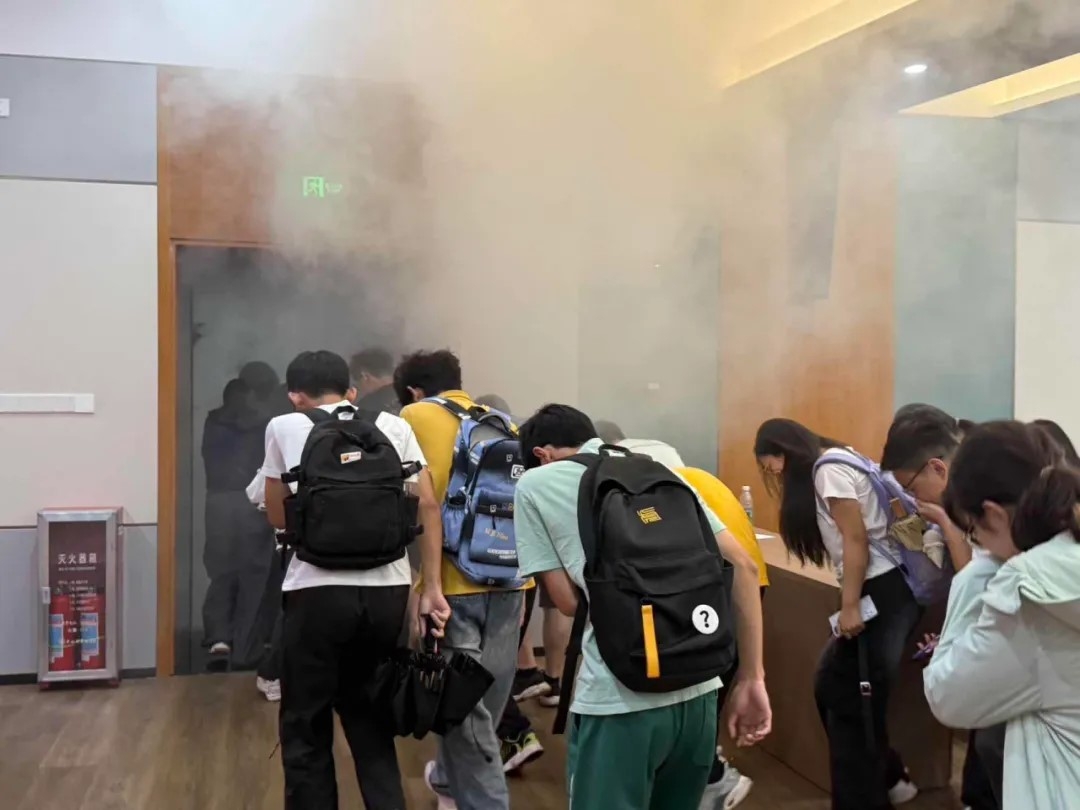 动员之后,师生们按照指引开展火灾模拟逃生疏散演练,掌握 “弯腰捂鼻” 从室内紧急撤离的要点,整个过程紧凑有序。
