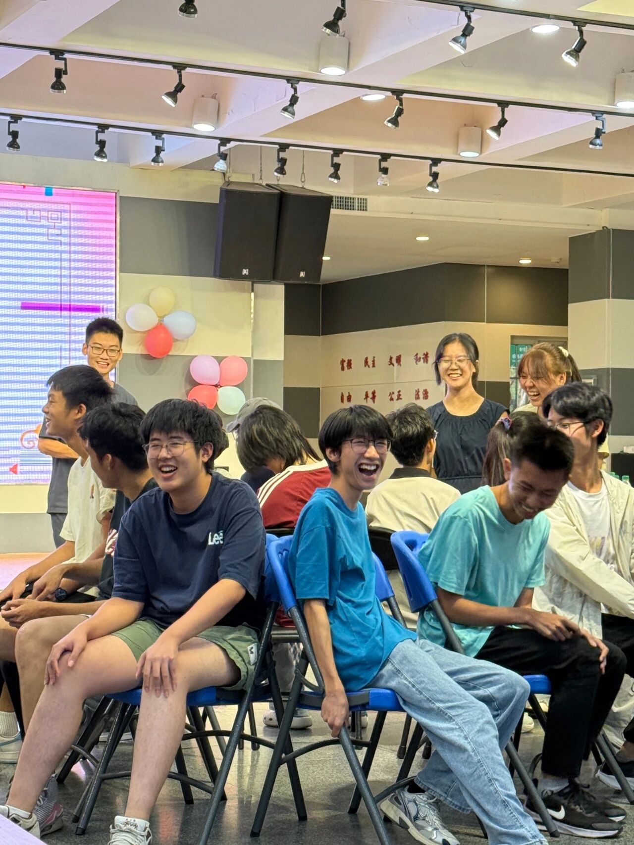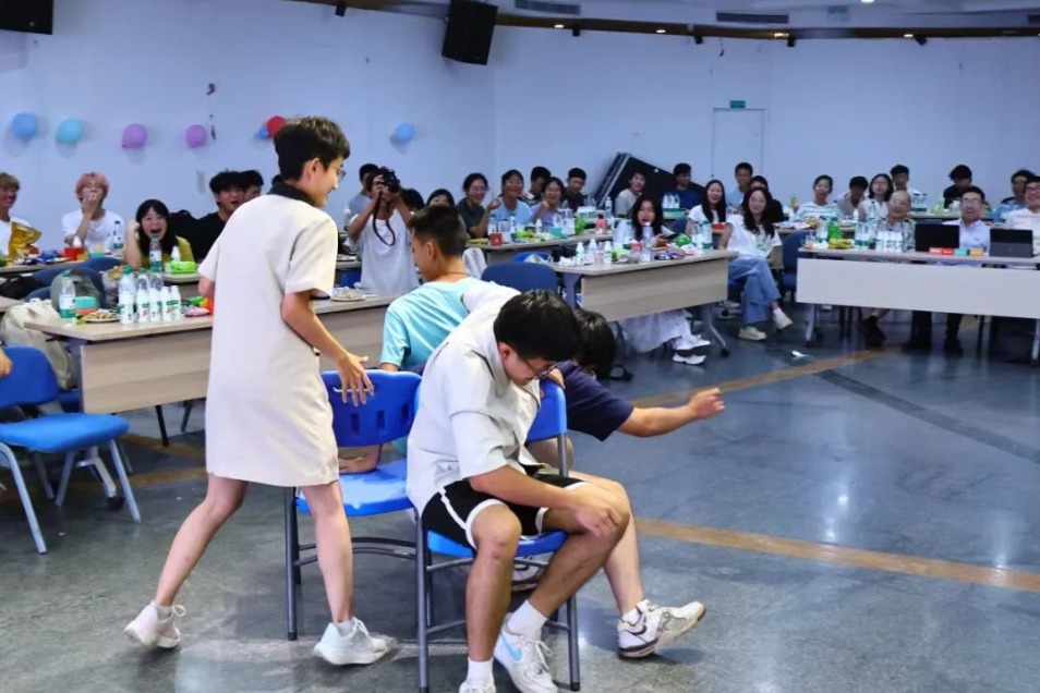 “传声筒”的传话结果引发阵阵爆笑;“抢凳子” 的比拼让全场欢呼不断;“猜歌名”让台上台下的歌声与欢呼声交织成欢乐的海洋。这一刻,没有师生的距离,只有共同享受欢乐的伙伴。