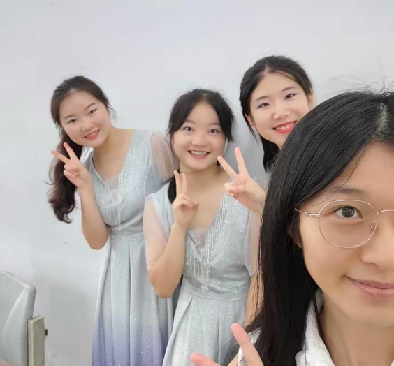 在实践中,512寝室的每位成员都身兼班委与学院学生骨干的双重角色。她们不仅是班级事务的热心建设者,共同出谋划策、凝聚集体,也在不同的学生组织与社团中发挥所长、锻炼自我——朱文钰与周熙然在同一部门中并肩作战,余洁璇和赵虹媛则作为不同组织的负责人,仍常跨部门协作、高效推进工作。这种从“室友”到“同事”的延伸角色,让她们在互相学习、彼此激励、共同成长的氛围中,变得更加积极向上。