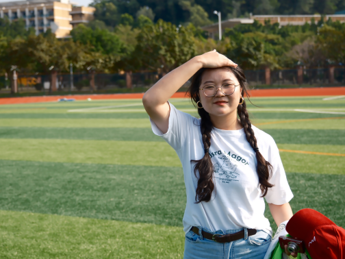 赵虹媛在院运会现场担任志愿者