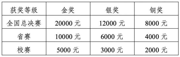 对于在大赛各级赛事中取得奖项的选手,学校按以下标准给予奖励。