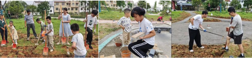 以师生团队、村委、当地工匠为主体成立儿童乐园共同缔造小组,学生团队负责儿童乐园方案设计与技术指导,并在具体施工过程因地制宜对方案进行调整,以建造更加符合村民需求的儿童乐园。在儿童乐园共建中,学生与当地工匠互相学习,探索了各种机制与宣传工作发动群众投工投劳,发动村民建设村庄的主体性。通过共建儿童乐园,同学们将所学规划知识运用在实践中,在切实为乡村做贡献的同时长才干、增本领。