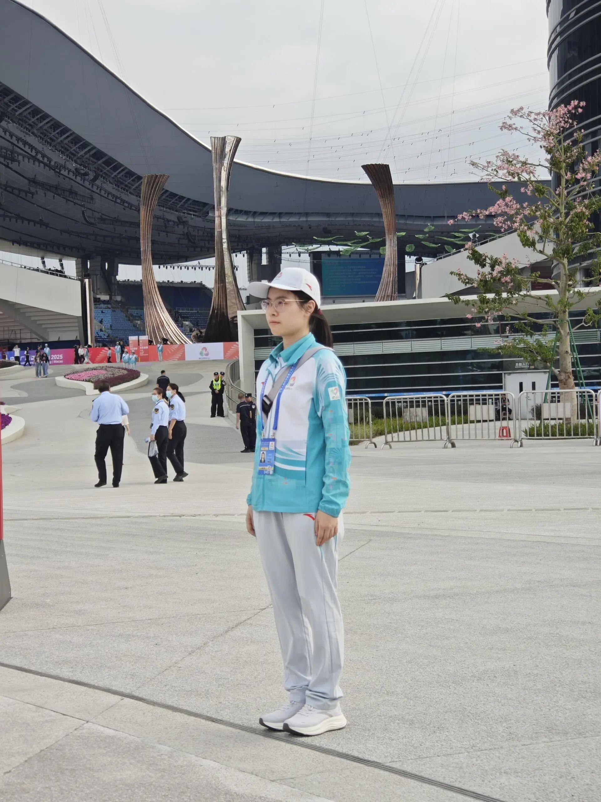 在北广场观众引导岗的这段服务时光,虽短暂却充满温度。作为观众入场时遇见的第一批志愿者,我们始终以微笑相迎,挥动双手,热情地向观众说出“欢迎您的到来”;而在散场时分,我们挥手道别,真诚地说出“感谢您的观看”。每当观众热情回应,我们便以志愿礼相赞,由衷说出那句“为你更精彩”。除此之外,我们也耐心解答观众的各类问题,尽力满足每一个小小需求。我们希望通过自己的热情与微笑,让每一位踏进场馆的观众,从第一刻起,就能感受到广州这座城市的温度与全运会的真挚心意。这份双向奔赴的温暖,是我志愿服务中最珍贵的记忆。