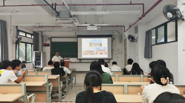 建筑规划与保护视角则由刘立欣老师主导。他扎根康乐园历史建成环境的发展脉络,详细介绍园区百年建筑的变迁历程,解读怀士堂、格兰堂等地标建筑的设计风格与布局逻辑,并带领同学们沿着南校中轴线实地考察。同学们在行走中感受百年建筑的规划智慧与文化积淀,体会建筑保护背后的地理学思维。