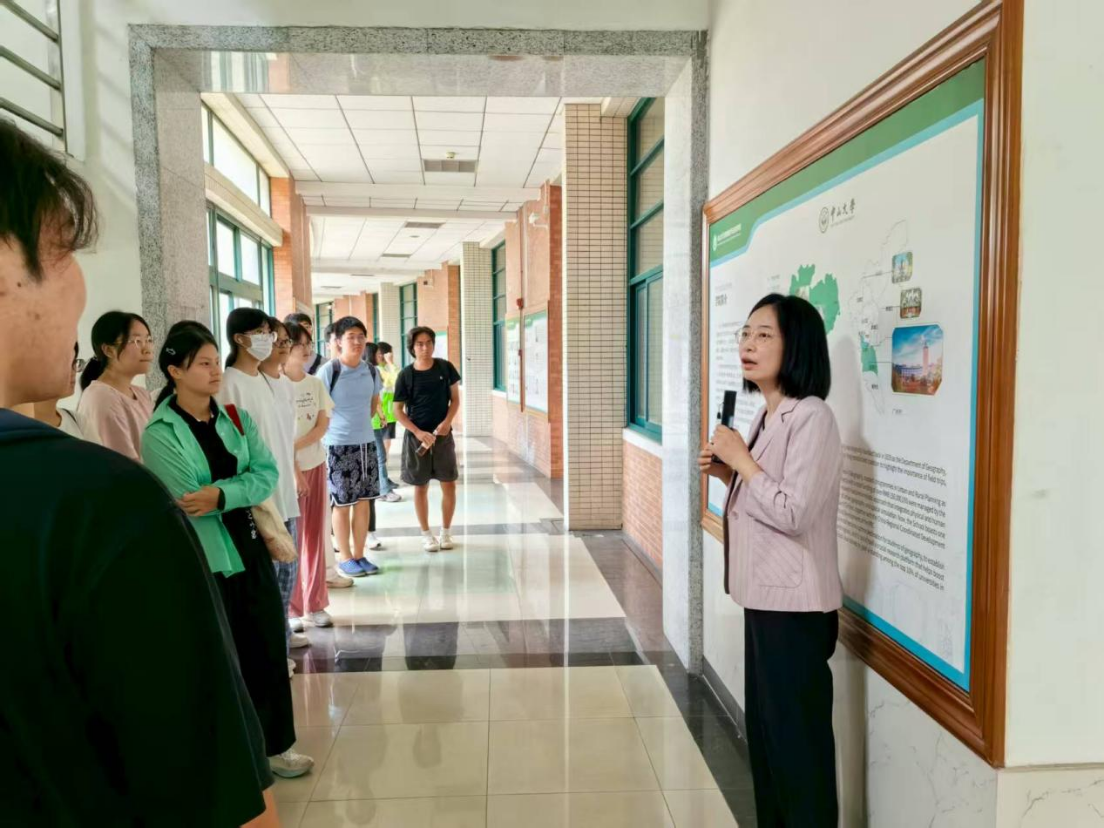 主题展览从多维度厚植家国情怀与专业认同。张春华副书记系统介绍了学院发展历程与人才培养理念;丁健老师生动讲述了彭华教授数十年深耕丹霞地貌研究、推动中国丹霞列入世界自然遗产名录的感人事迹;陈梓烽副教授与何晓桐、贝倩怡两位同学共同展示了城乡规划课程设计作品与建筑模型案例;谭一洺副教授介绍了学院国际地理学联合实习的发展历程;姜帆老师、欧阳慧同学以及郎嵬副教授、黄妍同学则分别分享了学院在连州的乡村振兴实践与凤庆“共同缔造”基层治理案例。一系列展览紧密衔接专业学习与价值引领,生动呈现了地理学的学科广度与社会温度,激励同学们树立专业自信与责任担当。