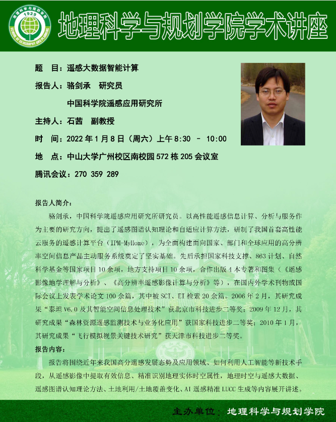 讲座预告 | 遥感大数据智能计算