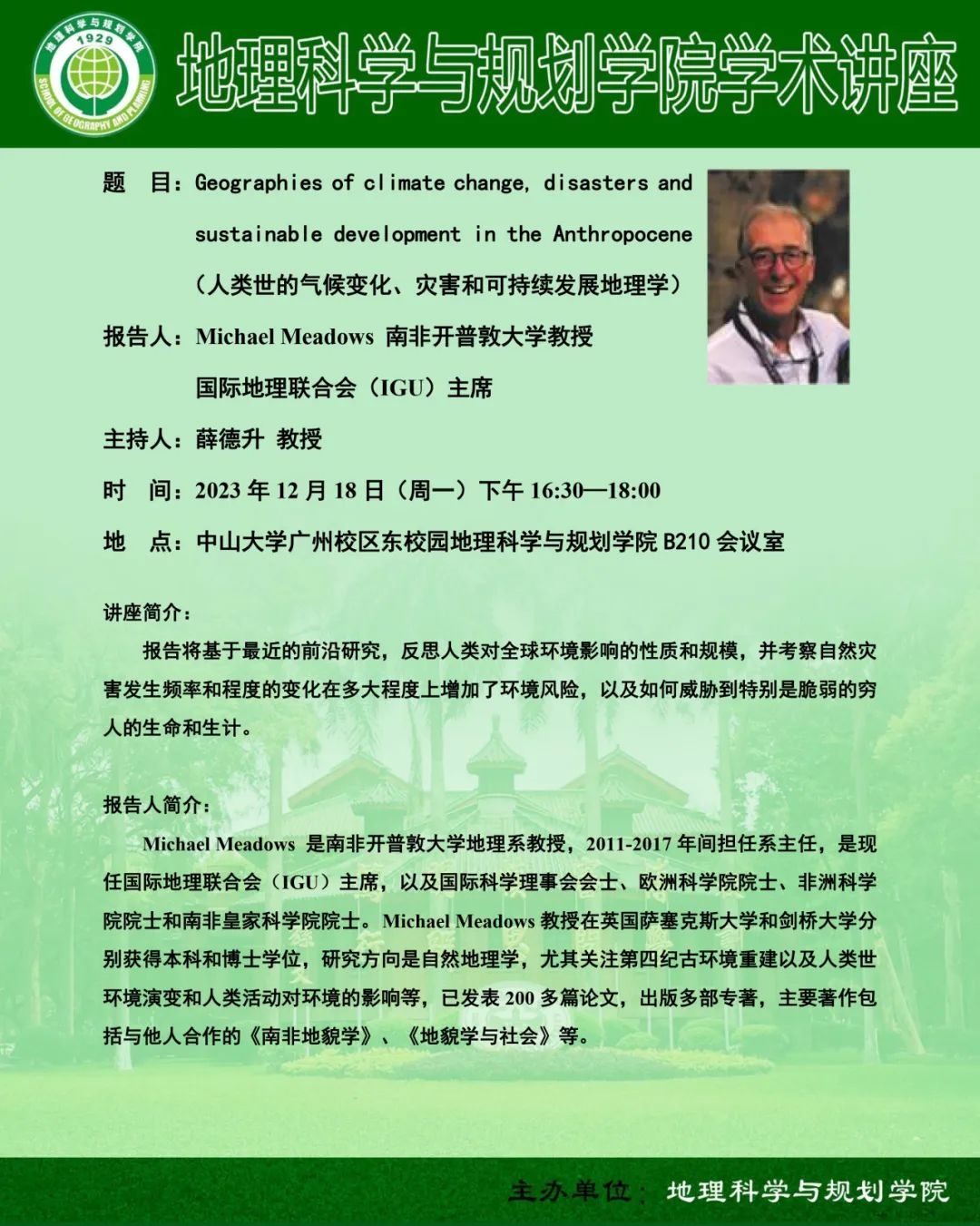 Michael Meadows 南非开普敦大学教授 国际地理联合会 (IGU) 主席