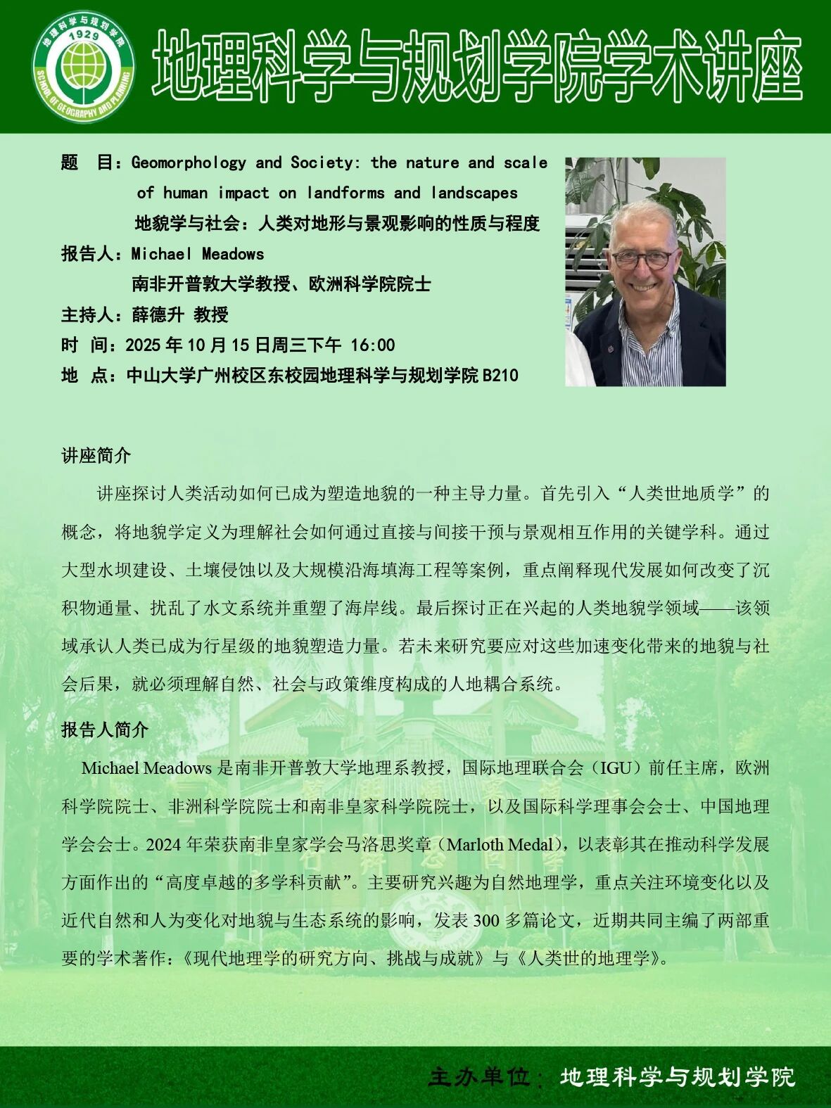 讲座预告 | 地貌学与社会:人类对地形与景观影响的性质与程度