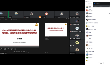 2022年12月21日下午,为深入学习贯彻党的二十大精神,学院党委委员、院长薛德升同志以“中国式现代化的伟大意义——学习习近平总书记在党的二十大报告的体会”为题,为遥感与地理信息工程系专任教师党支部、本科生第一党支部讲授党课。