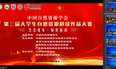 12月12日,第三届全国大学生自然资源科技作品大赛在江苏南京拉开帷幕,比赛中来自全国不同院校和专业背景的优秀本科生展现出了新时代地理学子的风采。本届大赛以“生态优先、绿色低碳”为主题,比赛形式为“线上参赛”,共吸引全国81所高校105个学院积极参与,有效作品数量为196份。